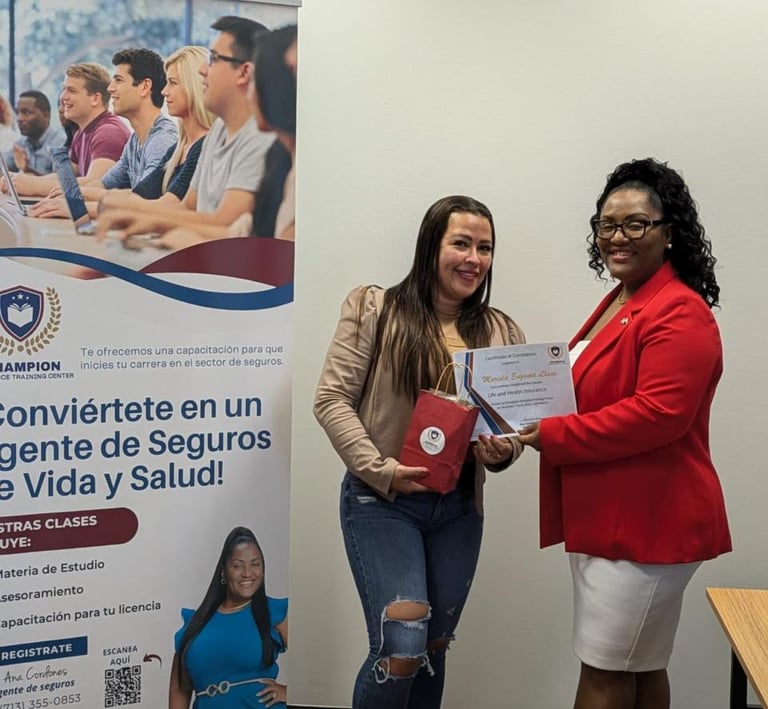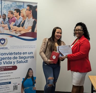 En Champion Insurance Training Center, formamos agentes con valores, disciplina y visión de crecimiento, brindando acompañamiento cercano, herramientas reales y oportunidades de desarrollo personal y económico.