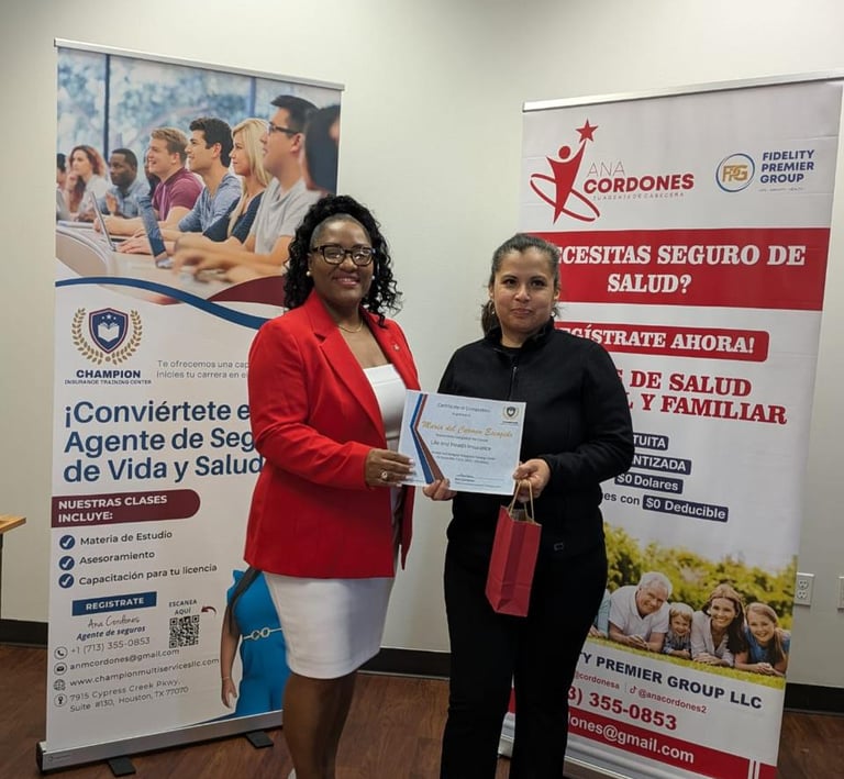 Ana Cordones es una agente de seguros con amplia experiencia que decidió crear Champion Insurance Training Center, una escuela diseñada para ayudar a más personas a ingresar al mundo de los seguros.